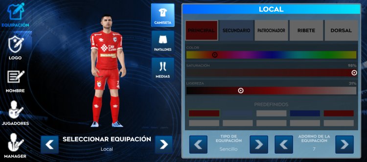 1° SELECCIONAR EQUIPACION: LOCAL.