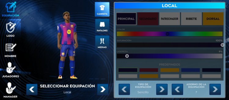 1° SELECCIONAR EQUIPACION: LOCAL.